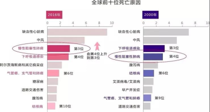 慢阻肺是目前全世界第四大死亡原因,被称为“中国人的第三大杀手”。