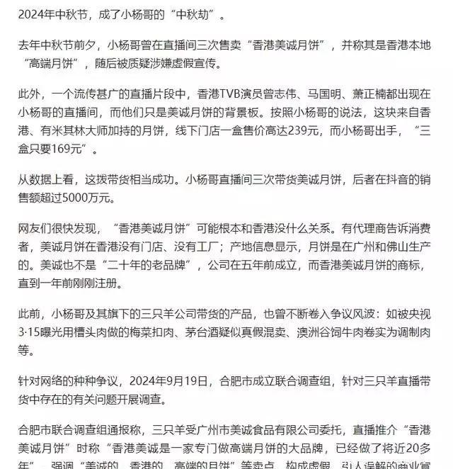 其中一个就是前面提到的槽头肉事件,但这还不足以压垮大小杨。最严重的其实是香港美诚月饼以及澳洲谷饲牛肉卷事件。